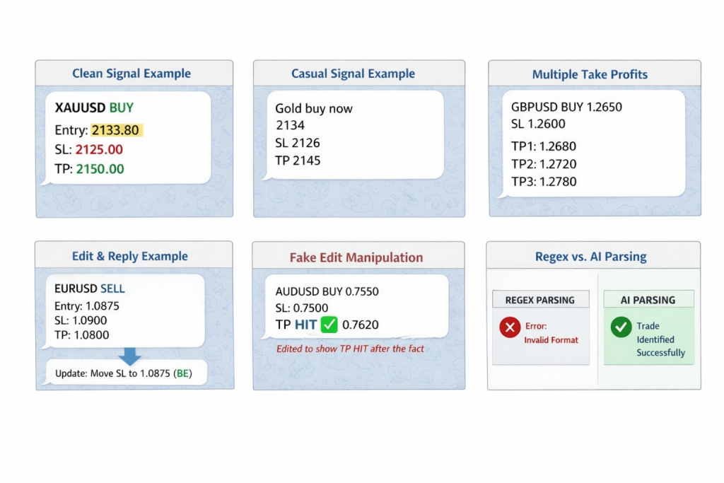 If you’ve joined a Telegram forex signal channel, you’ve probably noticed something quickly. In most cases, message formats vary more than people expect. There is no universal message format. Some providers are clean and structured.Some are messy.Some edit messages constantly.Some send five follow-ups per trade. If you’re copying trades manually — or building automation — […]